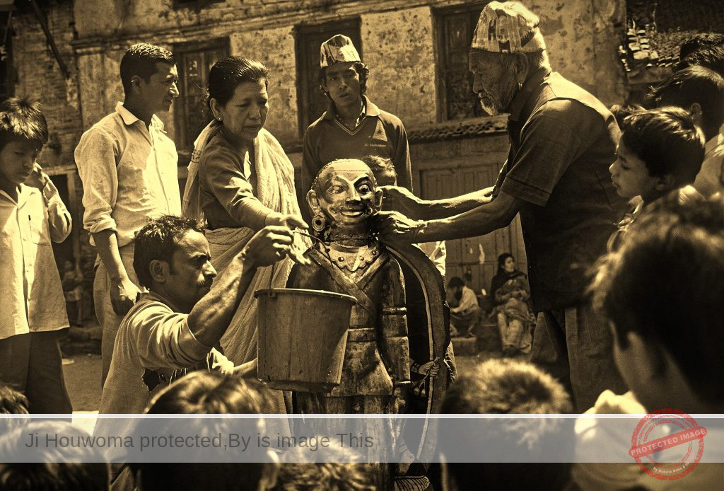 This god is regarded as the son of Manandharas since he was selling oil in this manner. A folktale describes Beta Dyo as a nasty youngster who frequently threw people from ladders, slapped sleeping people, and ruined cooked food. Because of this, the Beta Dyo is always restrained. It is kept by bending it over the head when it cannot be folded, even after being tied up. The Manandharas carry the Beta Dyo knotted in this manner and put it in Bhairav Nath’s chariot.
