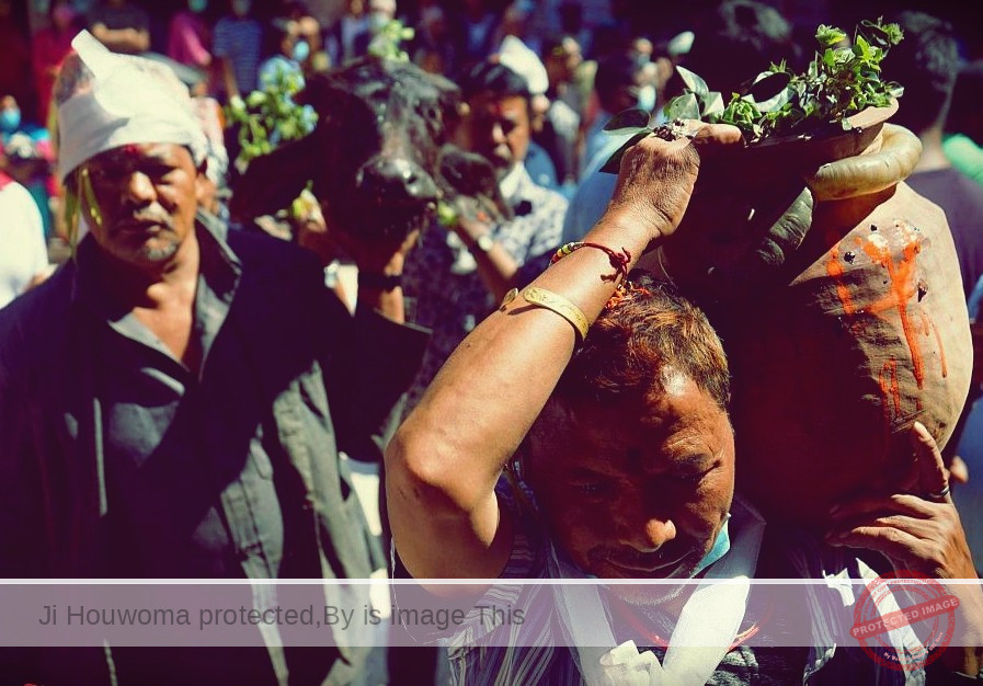 It’s said that if you eat a piece Pumpkin -Bhuifasi (Kubindo), you won’t become sick. As a result, getting a piece of Pumpkin -Bhuifasi (Kubindo) is challenging. During the parade, Male Buffalo’s head was also carried around.