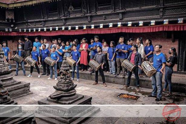 Gunla is a holy month for Newar Buddhists, celebrated by reciting scriptures, fasting, and visiting worship places. It is rooted in the Buddha's time when monks taught the Dharma. Traditional beliefs suggest that excessive rain caused mud house devastation and melancholy, so people played devotional music at Swayambhu.